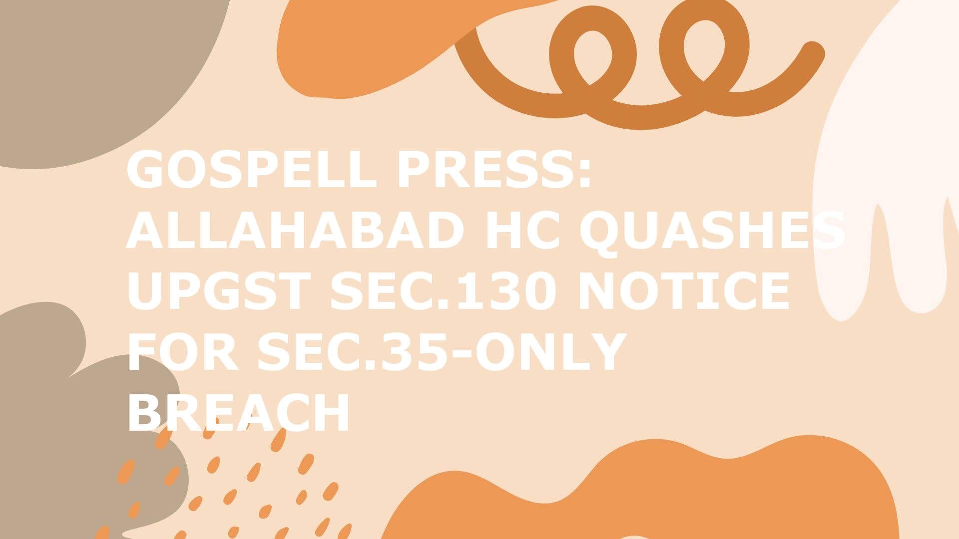 Gospell Press: Allahabad HC Quashes UPGST Sec.130 Notice for Sec.35-only Breach